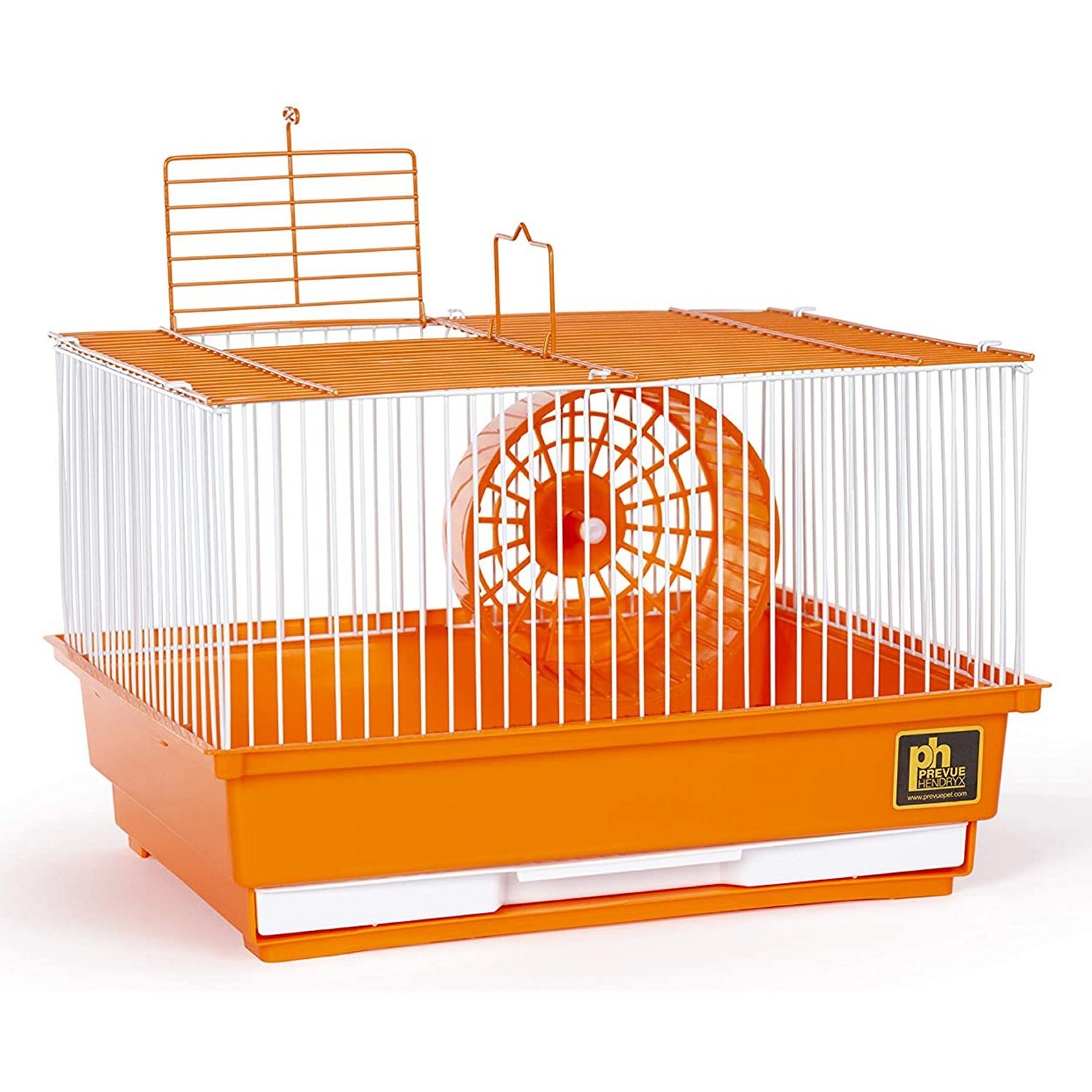 Prevue Pet Products single-story hamster & Gerbil Cage makes a great home for your hamster or Gerbil. Owner friendly features include a top-opening door, allowing you easy access into the cage, plus a removable bottom grille and pull-out tray for convenient cleaning. A color coordinated exercise wheel is included is to keep your hamster or Gerbil entertained while maintaining necessary activity levels. Ideal for hamsters and gerbils our single-story hamster & Gerbil Cage  measures 14" Long, 11" Wide, 8 3/4" High with 3/8" Wire spacing.