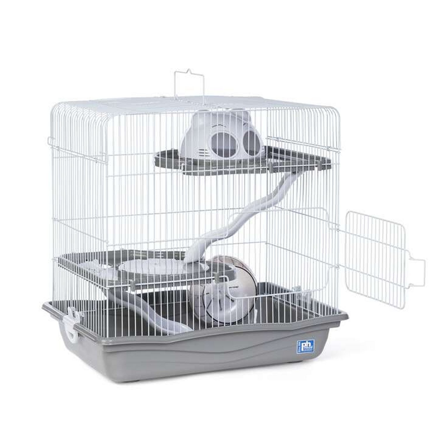 Prevue Pet Products Medium Hamster Haven in Blue SP2004BL is a spacious and fun home for your hamster. Tri-level cage provides plenty of options for healthy activity and also satisfies your pet's natural instincts to explore, hide and play above ground level. Multi-color components include two platforms, two slide ramps, one hideaway dome and one exercise wheel. Featuring two access points, this vibrantly colored hamster cage has one front door and a larger, top-opening door. Visually engaging with its bright Blue base and assorted color accessories our Medium Hamster Haven measures 17 3/4" Long, 11 3/4" Wide and 17 3/4" High with 1/2" wire spacing.