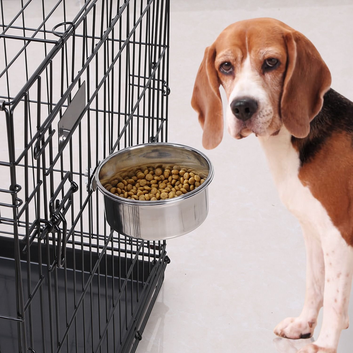 Home > Stainless Steel Dog Bowl Pets Hanging Food Bowl Detachable Pet Cage Food Water Bowl with Clamp Holder
